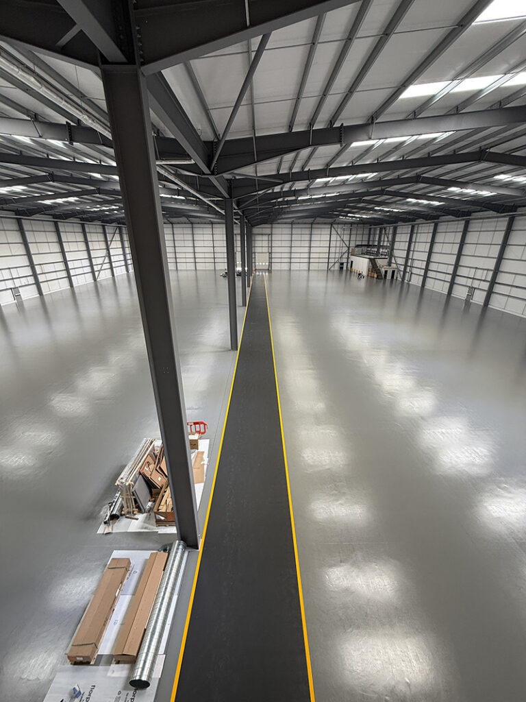 The new facility demanded an industrial floor that would stand up to intensive machining operations, provide clear visual definition between gangways and production zones, offer dependable slip resistance and help create a bright, low-glare working environment from day one.